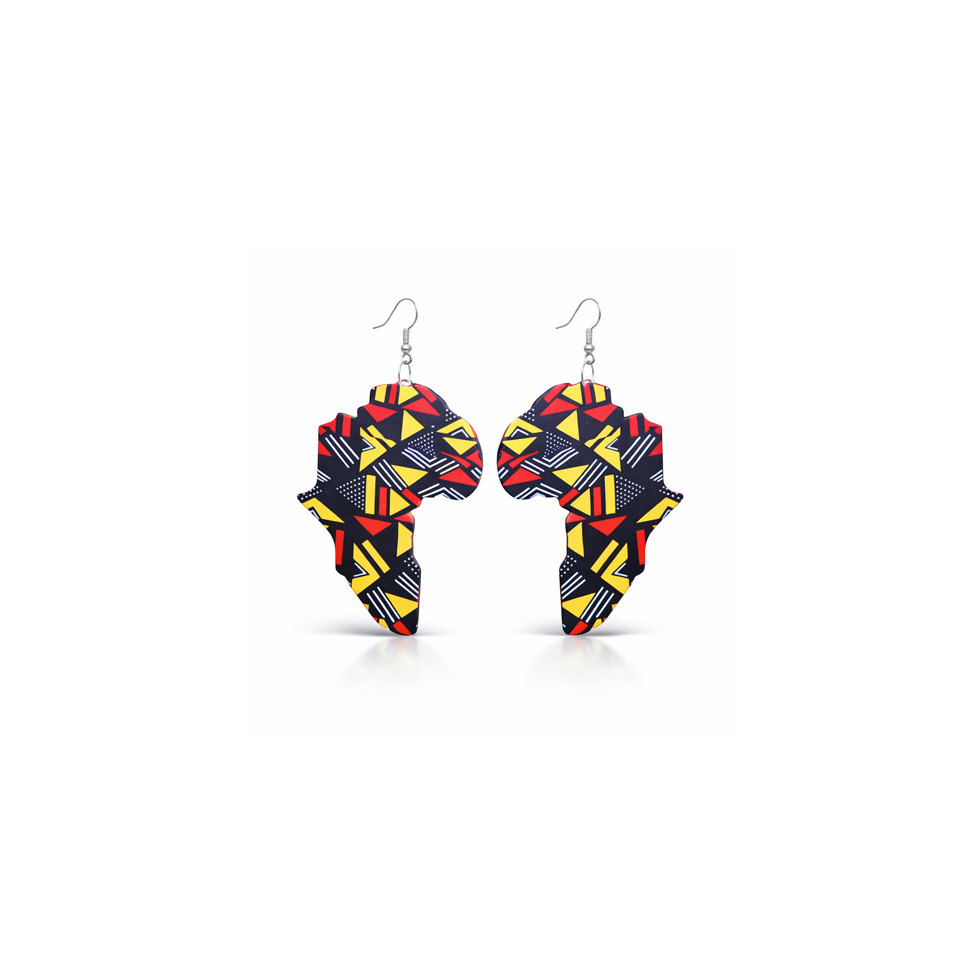 Celebrate African culture and style with these bold Africa Map Print Earrings. Designed in the shape of the African continent and decorated with vibrant geometric African patterns, these earrings make a powerful fashion statement while honoring heritage and identity.